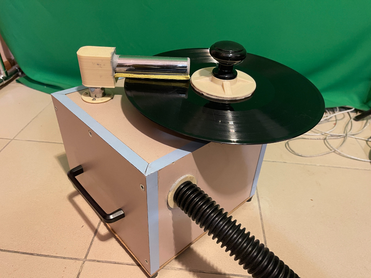 Всем привет! Экзистенциальный вопрос "Мыть или не мыть?" пластинки давно уже решен - "Мыть, однозначно!". Тут только надо определиться чем мыть и как? Самый простой способ, разумеется, мыть мылом, под краном. При таком способе можно замечательно сэкономить деньги, но нельзя быть уверенным в том что вся грязь будет удалена из звуковых дорожек. Самым "чистым" методом сейчас считается чистка винила при помощи ультразвуковых машин, но этот вариант и самый дорогой, по тому как ценник на такой агрегат для обладателя небольшой коллекции совершенно немыслимый. Есть промежуточный по цене и качеству очистки вариант и это вакуумная машина. "Фирменные" аппараты к сожалению то же недешевы. Однако имея под рукой кое-какие инструменты и смекалку, можно соорудить такой агрегат самому. Что собственно я и сделал. Для начала, при помощи FreeCad были изготовлены модели некоторых узлов, которые были распечатаны на 3Д принтере, дальше в ход пошла мебельная труба м25. Так же пришлось заехать на ближайший р