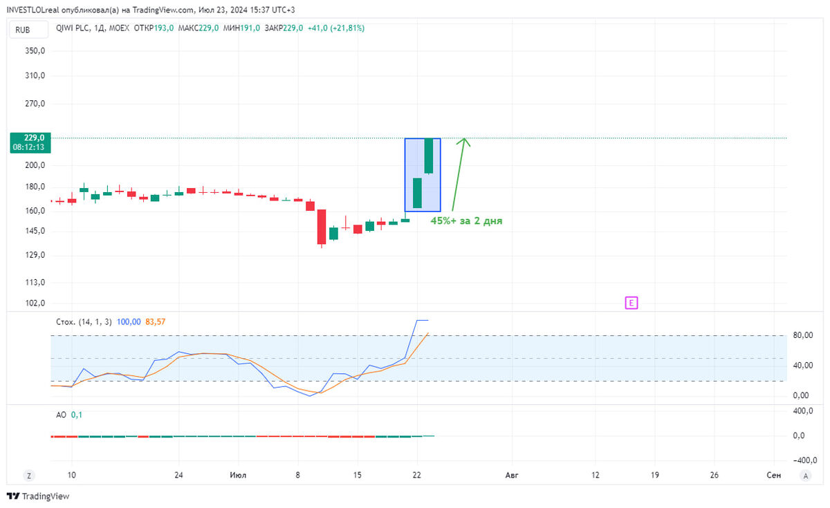 «ТКС Холдинг выкупил контрольные доли в размере 51% в Рови факторинг плюс и Рови Технологии у АО «Киви»» Оправдывает-ли эта новость такую реакцию бумаги? — спорный вопрос.