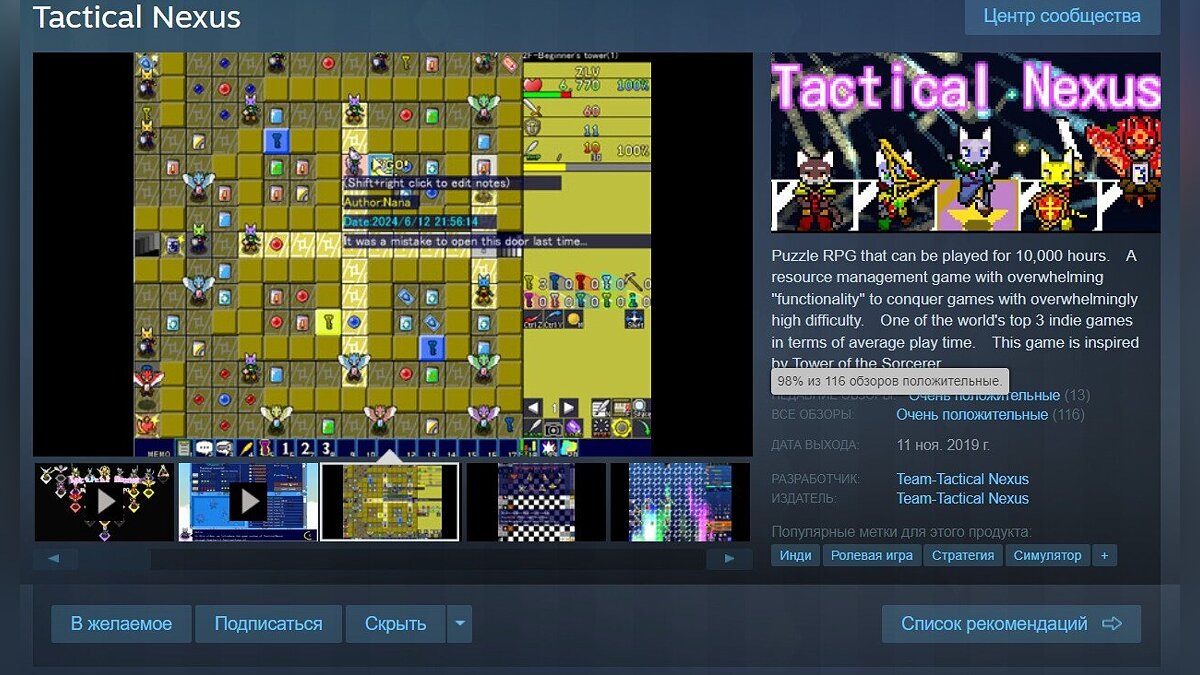 В цифровом сервисе Steam можно бесплатно забрать необычную ролевую игру под названием Tactical Nexus, которая раньше продавалась за 710 руб. Проект имеет 98% положительных отзывов. Среди главных особенностей разработчики выделяют «тысячи часов геймплея». В Tactical Nexus геймерам предстоит путешествовать по волшебным башням, побеждать находящихся в них противников и собирать бонусы. В ходе прохождения игроки должны грамотно управлять ресурсами и решать головоломки.