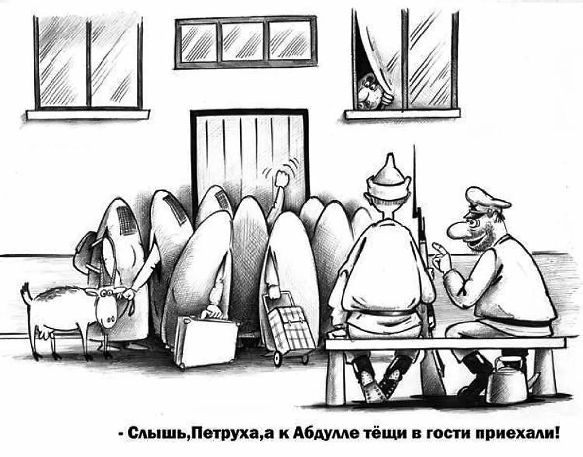 Когда речь заходит о тёщах и свекровях, не сложно догадаться, почему карикатуристы не упускают возможности добавить пару метких шуток. Эти персонажи в семейной жизни давно стали любимыми героями анекдотов, ироничных историй и, конечно, карикатур. Андрей Бузов охотно изображает тёщ и свекровей как настоящих генералов семейного фронта, которые приходят, чтобы навести свои порядки и проверить «бойцов» (читай: зятя или невестку).