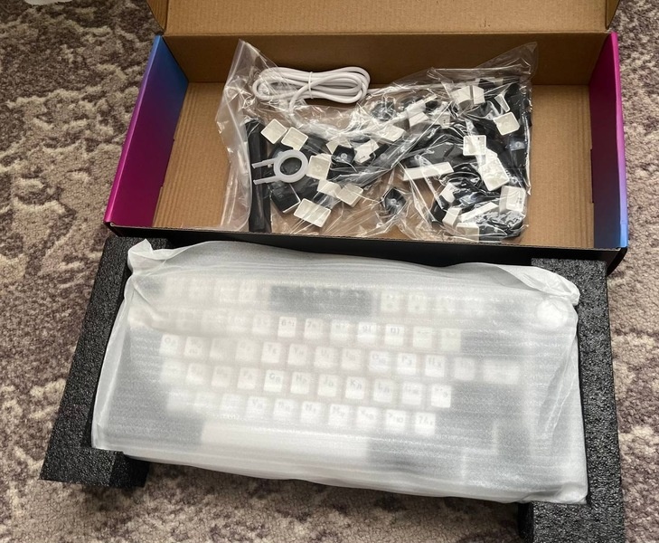 Бюджетная механика - горькая правда или сладкая ложь? Как на самом деле выглядят дешевые механики, какой в них толк и потенциал, и стоит ли вообще брать такое, или лучше добавить, и купить то в чем уверен - сейчас проверим! Этот раздел написан с помощью данной клавиатуры, по-началу было очень не удобно, но со временем - привыкаешь. И опять, коробка была вскрыта, это уже визитная карточка ДНС! Это уже 10-ый товар, который я беру и они все были вскрыты! Очень надеюсь, что для проверки качества... Сама коробка выполнено бюджетно, но не плохо. На лицевой стороне красуется сама клавиатура с включенной RGB - подсветкой, на тыльной стороне краткие характеристики, по бокам - мелочи. После открытия сразу лежит клавиатура в "мешочке", под ней дополнительные кейкапы и пулер. Вся клавиатура выполнено, конечно же из пластика и довольно приятного. Устройство довольно легкое, но не прогибается, ничего ни где ни люфтит и не трескает. Внутри клавиатура, конечно же не смазана, шумки нет, но за такую цен