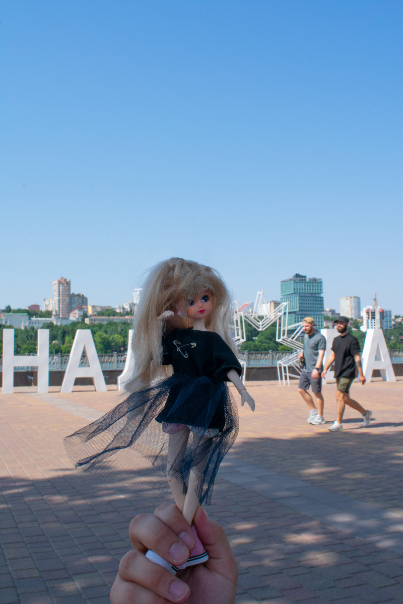 В эти жаркие деньки, решила я прогуляться оп набережной. И конечно же взяла с собой Джесс. Джессика и слово "Надежда" (надежда на то, что станет прохладней😅), которое никак не захотело поместиться в кадр полностью. Джессика и дом вверх дном. Был там замечательный готический отель, созданный для мрачных фотографий в мрачную погоду. Ну а солнечной погоде полагается яркий дом перевертыш. Фотографировала я и на фотик и на телефон. Фотик дает более глубокие фотографии, но в последнее время у него совсем грустно с фокусом😞 Просто симпатичное граффити которое здорово гармонирует с нарядом Джесс и позволило мне сделать фото в таком немного урбанистическом стиле. А не отсылка к эпизоду "Бриллиантовой руки", как пошутил мой папа😒. На этих фотографиях особенно видна разница между фотоаппаратом и телефоном.