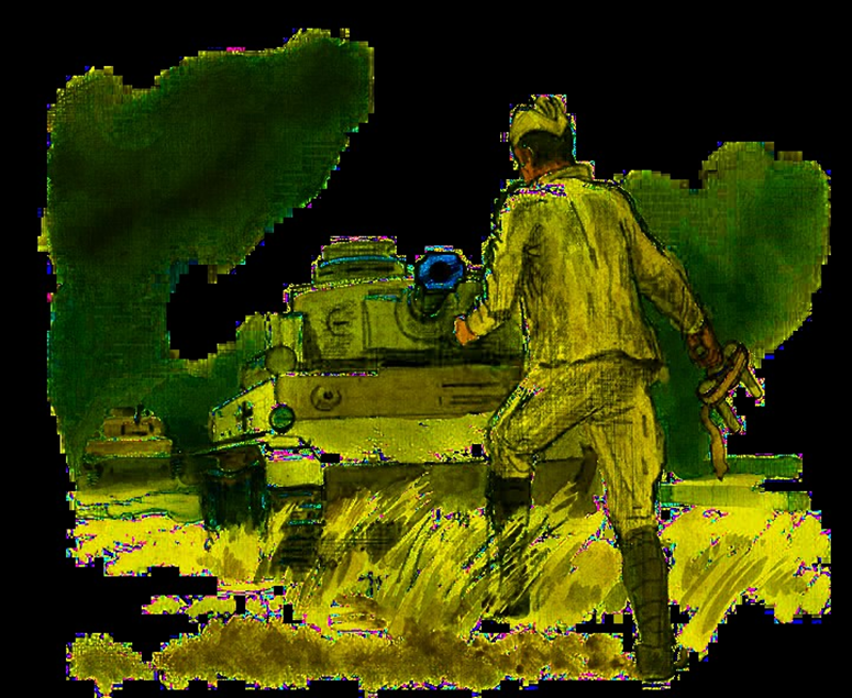 Танк горит. Два нацика повисли на броне, третий поймал пулю возле гусеницы. Бойцы Аникеева перестреляли их из автоматов и ружей.