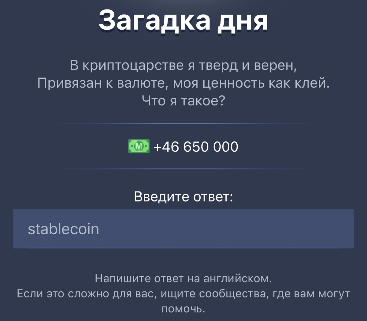В MUSK EMPIRE ответ на загадку дня: stablecoin Игра здесь