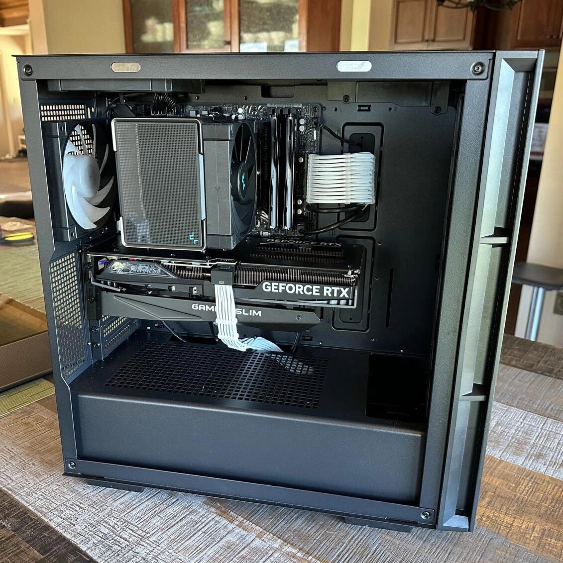 Собрал игровой ПК для брата, он хотел что-то, способное тянуть игры на ультра настройках в 1440p, и при этом не разорить свой кошелек))) С выбором комплектующих особо не спешили и мониторили рынок в поиске выгодных предложений, в первую очередь отдали приоритет цене/производительности, а также позаботились о том что бы иметь возможность апгрейда в будущем. AMD Ryzen 5 7500F 5.0 GHz 6-core MSI SLIM RTX 4070 SUPER 12 GB ASRock B650M PG RIPTIDE 32 GB 6000 CL30 G.Skill Trident Z5 Neo RGB 1 TB SSD PCIe 4.0 MSI SPATIUM M480 PRO DEEPCOOL PN850M 850W 80+ Gold Deepcool AK500 ZERO DARK Deepcool CH560 Mid Tower Бюджет — 150 000 ₽ ФОТО ЗДЕСЬ...