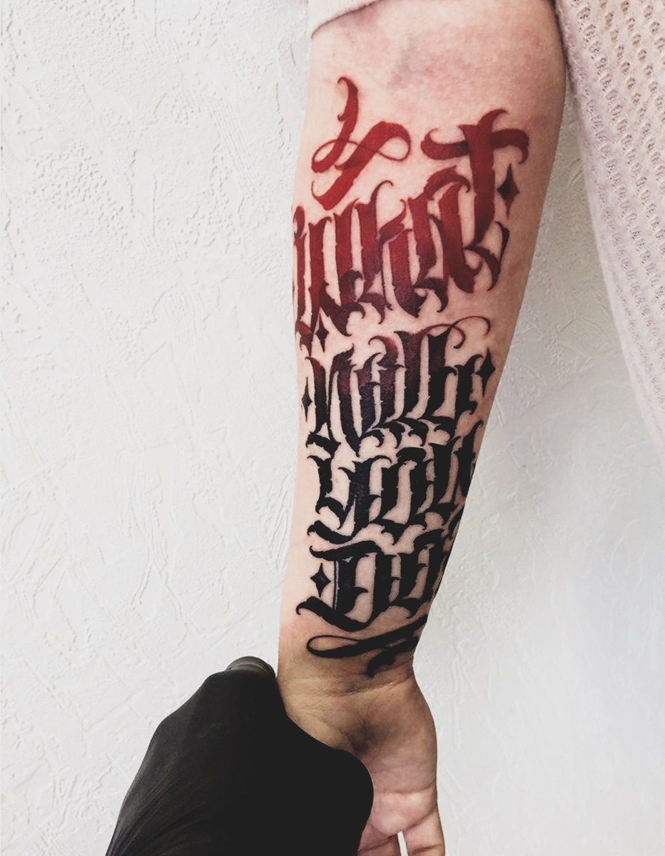 Каллиграфия - это искусство красивого письма, которое существует на протяжении веков. Она охватывает различные стили и техники, начиная от арабской и китайской каллиграфии и заканчивая латинскими шрифтами. Каллиграфия - это не просто набор букв, это целая философия, в которой каждое слово и каждая линия имеют своё значение и красоту. Значение татуировок в стиле каллиграфия: