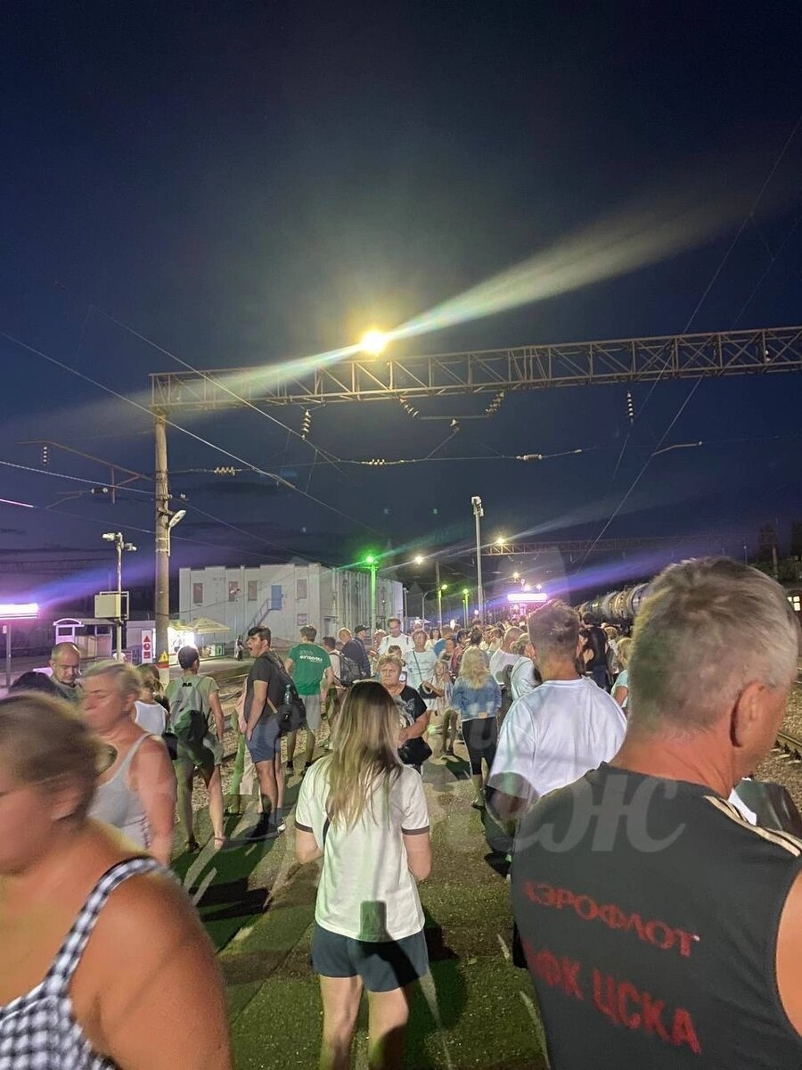 Пассажиров поезда «Адлер-Москва» эвакуировали на станции Грязи-Воронежские, сообщили очевидцы. «В Грязях стоянка должна была быть с 21:00 до 21:05. В итоге в 21:20 подошел проводник и сообщил, что поезд заминирован (поступила такая информация им). Все вагоны вывели на улицу».