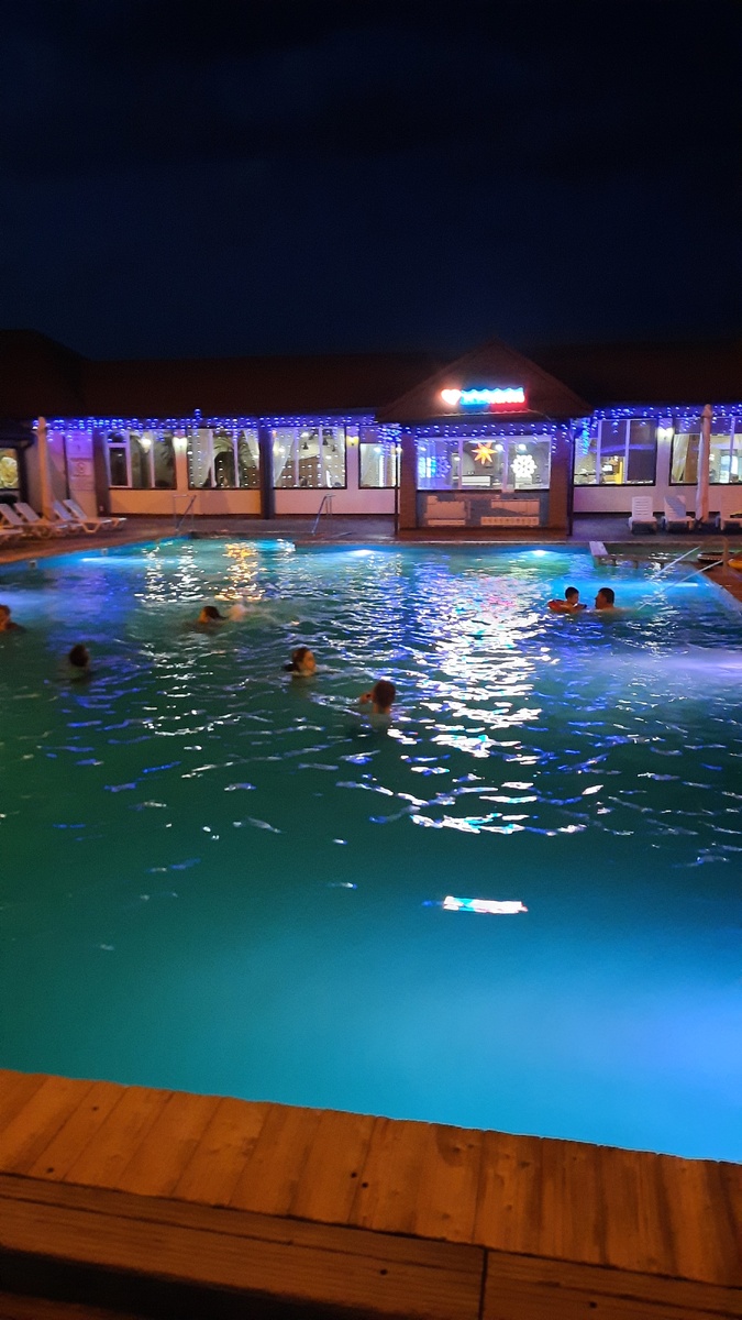 С утра приготовила картофельное пюре и фаршированный перец. В качестве закуски ещё вчера накрошила помидоров с луком в маринад. Получились кисло-сладкие, пряные, вкуснючие. Просто и вкусно, как я люблю. Рецепт напишу завтра, ибо точные пропорции дома на листочке остались записанными. Сегодня мы едем отдыхать! Наконец-то вырываемся поплавать! Решили ехать не на море, а на геотермальные источники. Во-первых, номер в 2 метрах от бассейна. Во-вторых, тёплая вода. От 31.5 до 40 градусов. В-третьих, близко от дома. В-четвертых, купаться можно хоть сутки. На море столько времени в воде не проведёшь. В-пятых, такое купание полезно из-за веществ, содержащихся в воде, а не только из-за физической нагрузки. В-шестых, нет волн, можно выбирать разные бассейны (по t воды и глубине). В-седьмых, дети предпочли бассейн. И вот мы здесь. Номер в этот раз нам выделили больше и комфортнее, из 2 комнат. Сначала покажу фото с сайта aquatermo01.ru . У нас почти так же, только ещё уютнее))) Здесь большой
