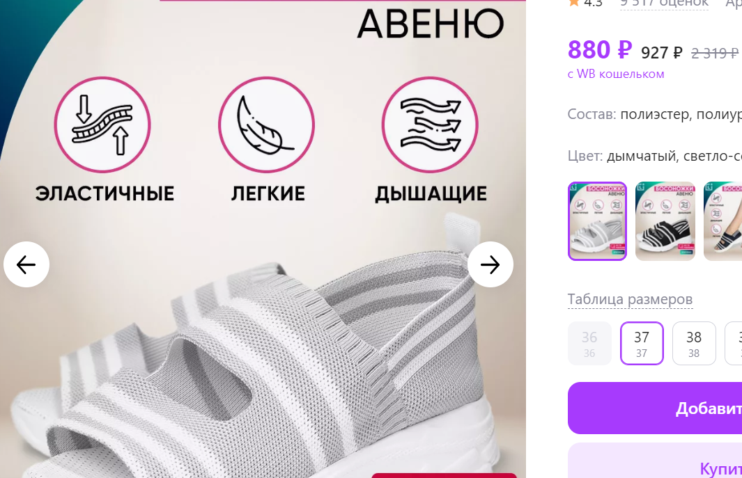 За деньги я готова на многое, например, ходить на работу 5 дней в неделю. Не готова ходить домой на обед, два раза за день уходить из дома для меня выше моих сил. Работаю на ногах, до работы пешком хожу, по меркам больших городов у меня совсем работа близко, 18 минут средним шагом, не торопясь. Нужна удобная обувь, в которой комфортно. Пошла на сайт ВБ выбирала долго, мне нужно и не шлепки, и чтобы по ширине ноги без примерки подошли, исключить натирание, у меня вся новая обувь натирает ногу. Прочла отзывы, все хвалебные. Нашла вот такие. Мне показалось, что идеальный вариант по моим желаниям. Купила. Да легкие, не натирают. На этом все. Остальные качества обуви оставляют желать лучшего. Отзывы сейчас пишут за деньги все. Подошва жидкая, растекается под ногой. Стирать нужно раз в два дня, мараются быстро. После второй стирки потеряли весь товарный вид. Деньги выброшены на ветер, за 800 рублей проходила в обуви неделю. Встретится Вам подобная обувь, не вздумайте ее покупать. Повторю ещ