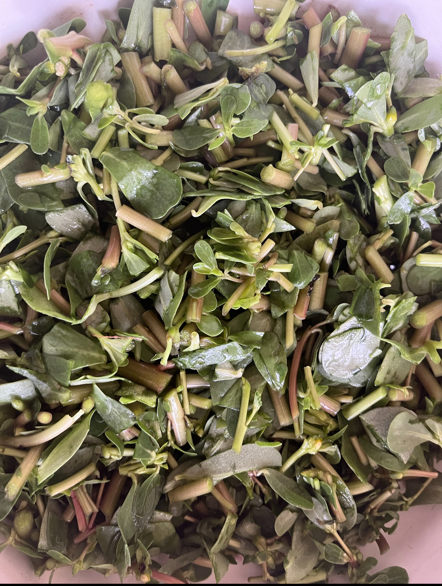 У меня есть уже рецепты из свежего портулака (дандура), который я выкладывала в статьях на Дзене. Сегодня новый рецепт! Нарезать тщательно промытый портулак (дандур), добавить несколько зубчиков чеснока, соль, пророщенную зеленую гречку и заправить мацони (с кефиром не пробовала). Хорошо перемешать и ву а ля - салатик готов! Не забудьте немного подождать (минут 20-30) перед тем, как его попробовать. Я чеснок нарезаю крупно (люблю, когда он попадает под зубы), но можно нарезать мелко или пропустить через выжималку. Несколько слов о пророщенной зелёной гречке. Прорастить можно только зелёную гречку, потому что она живая и не прошла промышленной обработки, как, например, обыкновенная тёмная гречка. Она продаётся не везде. Я покупаю её в России. Технику проращивания можно прочитать в интернете. Я максимально процесс упростила. Заливаю водой гречку так, чтобы она не выходила за верхнюю границу гречки и часто её меняю, чтобы гречка не протухла. Через 2-3 дня она прорастает. Затем держу в