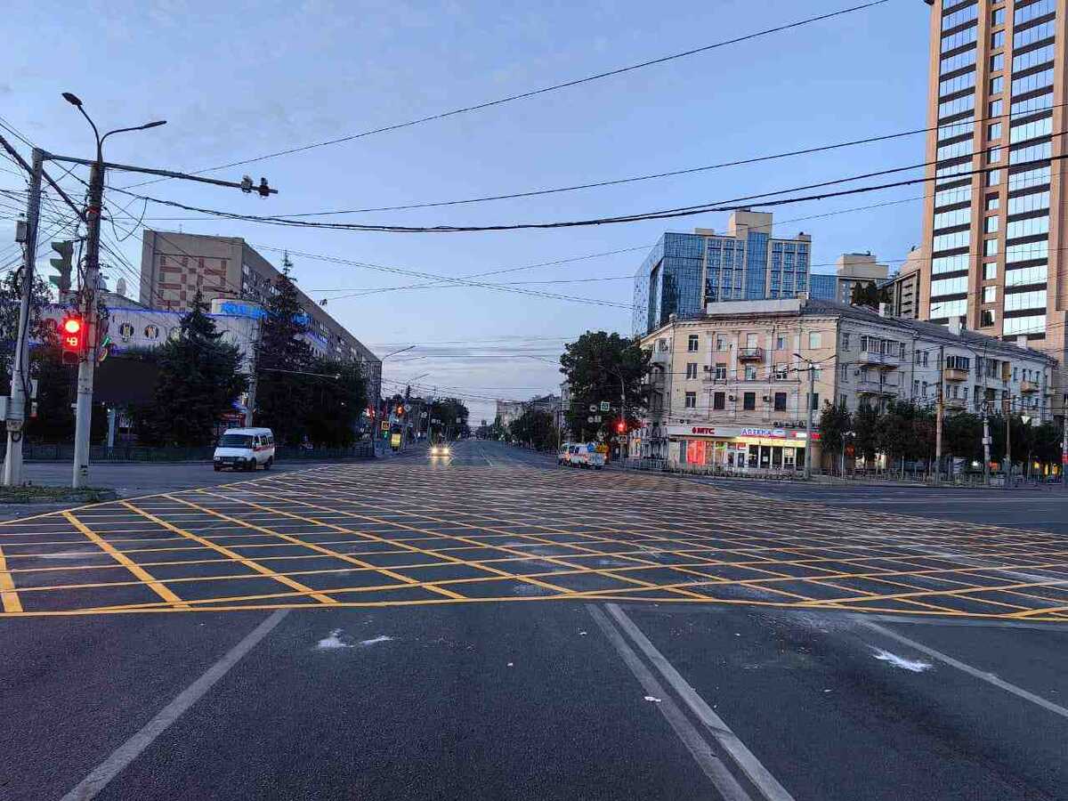 Сегодня, 22 июля, в Воронеже на пересечении улиц Плехановской и Кольцовской появилась вторая вафельная разметка.