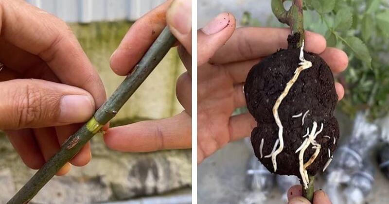 Выращиваю черенки прямо на розе. Для этого использую спитой кофе, чтобы улучшить укоренение