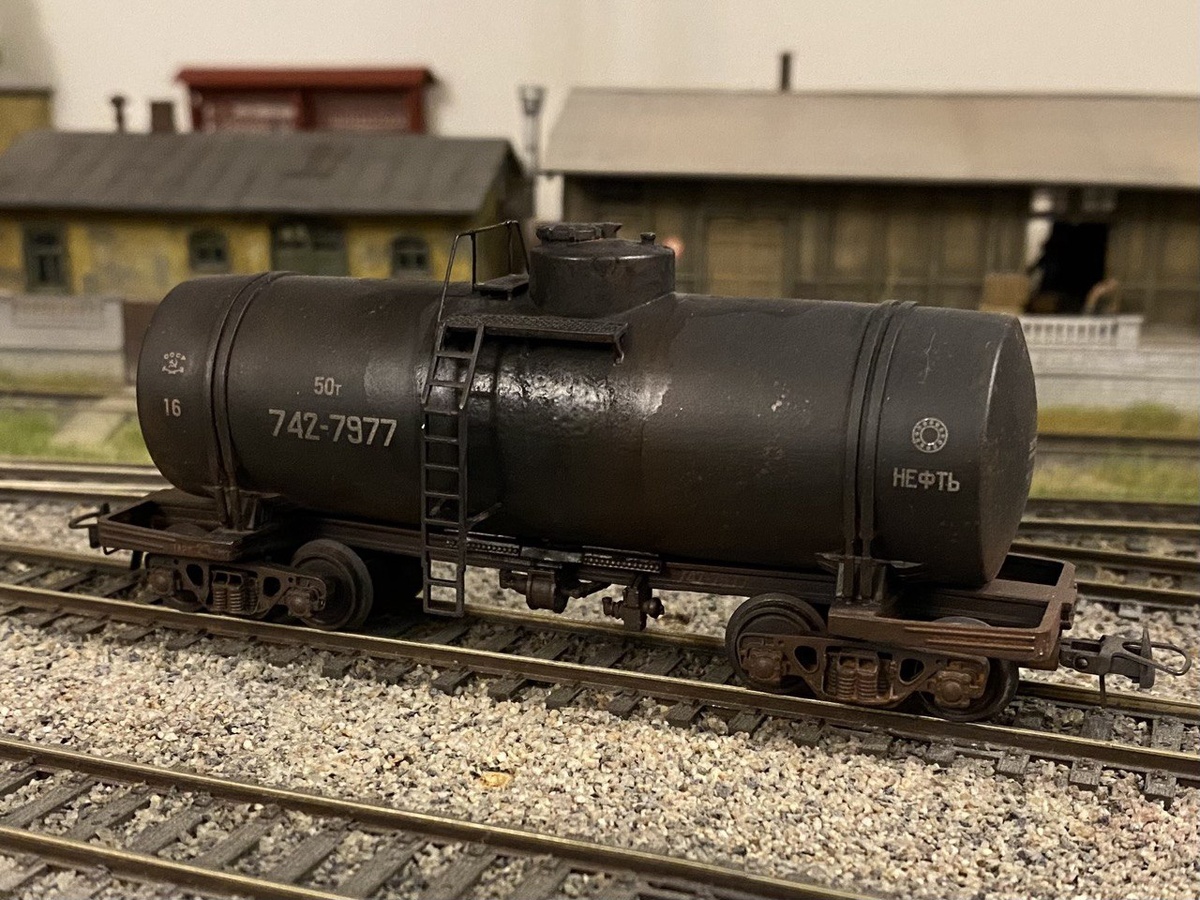 Финальная публикация с моделью цистерны 15-Ц862 из партии, выпущенной в 2024 году. Как и все опубликованные ранее, эта была изготовлена из набора для самостоятельной сборки производства студии "МакетНО" в масштабе 1:87. Модель была построена в основном в том же формате, что и остальные: базовый кит, комплект подвагонного оборудования, тележки с нем-шахтами, проволочные поручни, металлические колесные пары. Данная модель получила следы эксплуатации, причем дважды. После первого подхода результат получился в целом неплохой, но что-то не устраивало. Пройдя по бочке еще раз основными приемами старения, результат уже получился намного лучше, и модель приобрела законченный вид. Сейчас модель уже покинула родное депо в поисках лучших условий хранения и эксплуатации, а значит освободилось место для новых проектов. Но сначала нужно до конца опубликовать прошлогодние результаты. Поставьте лайк, если модель вам понравилась, и напишите в комментариях, модели каких вагонов вам бы хотелось увидеть