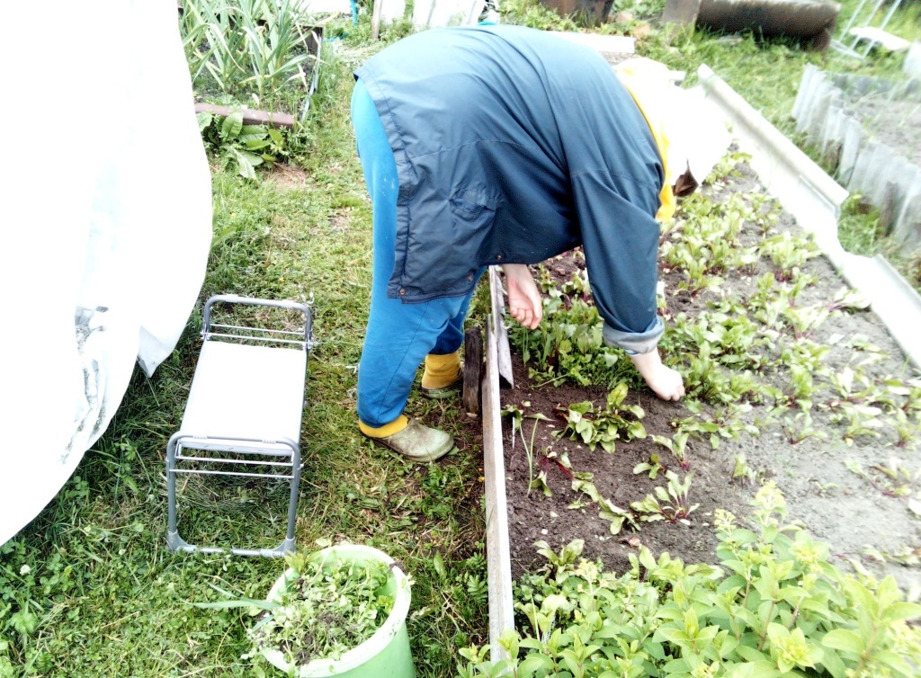 - Стульчики и скамейки. Если вы пропалываете грядки стоя вниз головой или сидя на корточках, то знайте, что ноги и спина в таких положениях быстро устают, после работы в огороде могут мучить головные боли. Чтобы избежать этих неприятных последствий для облегчения труда можно использовать специальные наколенники, стульчики и скамейки. Они защитят ваши суставы и помогут занять более удобное положение возле грядки. Вместо наколенников можно использовать походные пенки: они достаточно мягкие, после них не болят колени от перенапряжения и переохлаждения.