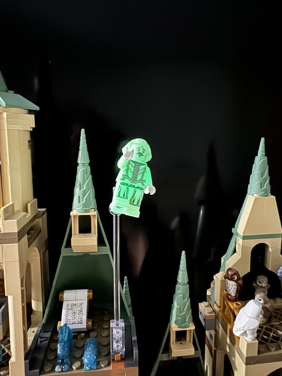 Купив набор с почти безголовым Ником я очень обрадовалась, что он светится в темноте. Замок стоит на комоде в моей комнате напротив кровати и засыпая я смотрела на него. Моя маленькая гордость. И да, мне 32 годика. Но купив несколько других наборов я была очень удивлена, что другие привидения не светятся. Кандиду Когтевран создатели решили сделать просто серой. В знак того, что она мертвый персонаж. Так же они поступили и с плаксой Миртл. В случае же с воспоминанием Тома Редла о себе фигурка сделана вообще, как живая. Как вы думаете почему светится был удостоен только почти безголовый Ник? Какие фигурки приведений есть ещё в наборах Лего по Гарри Поттеру? И светятся ли они?