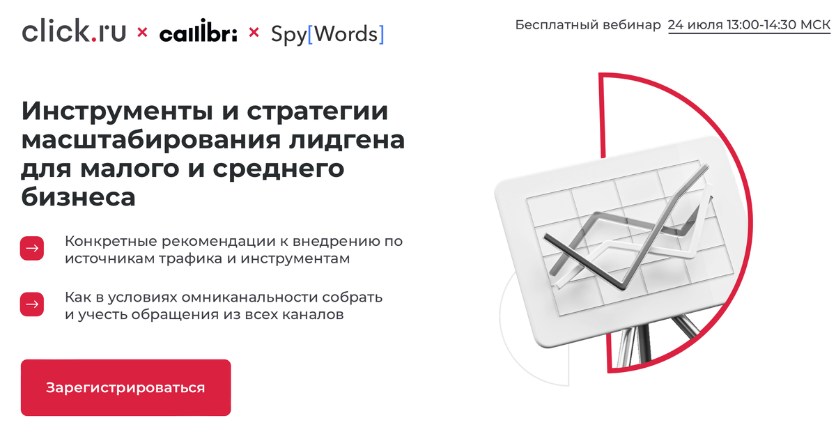24 июля в 13:00 - Приглашаем на бесплатный онлайн-вебинар от команд SpyWords, Сlick.ru и Callibri, где в прямом эфире мы разберем конкретные рекомендации к внедрению по источникам трафика и инструментам, а также, как в условиях омниканальности собрать и учесть обращения из всех каналов. На вебинаре вас ждут промокоды и выступления экспертов: 13:00 - 13:30 Как побеждать крупных конкурентов с помощью небольшого отдела маркетинга спикер - Николай Лобанов, директор по маркетингу Сlick.ru 13:30 - 14:00 Маркетинговые отчеты: почему вам не поможет сквозная аналитика спикер - Юлия Герц, эксперт по маркетингу Callibri.ru 14:00 - 14:30 Стратегии и техники анализа конкурентов для роста SEO и PPC трафика спикер - Антон Михайлов, CEO & Founder SpyWords.ru