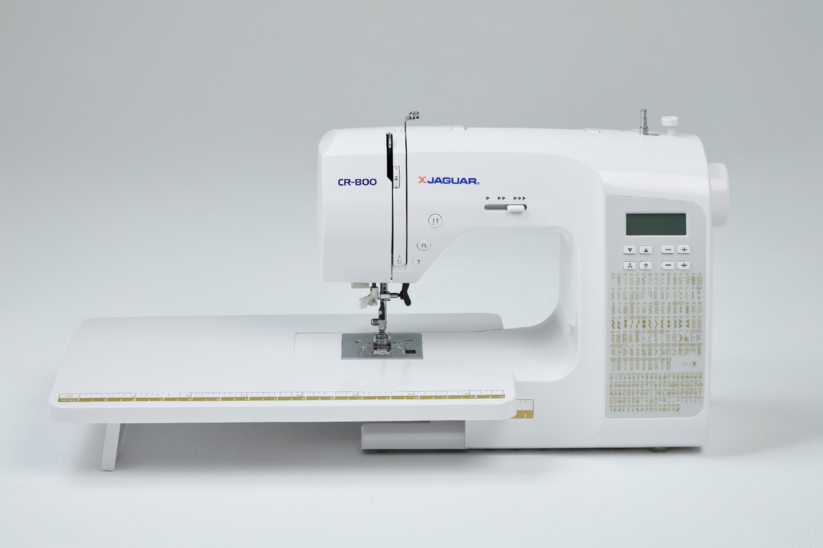 Швейная машина Jaguar поставляется со столиком, который значительно увеличивает рабочее пространство. То есть его не нужно докупать, как у многих других моделей мировых производителей. Дополнительный столик незаменим при работе с крупными изделиями или при квилтинге.