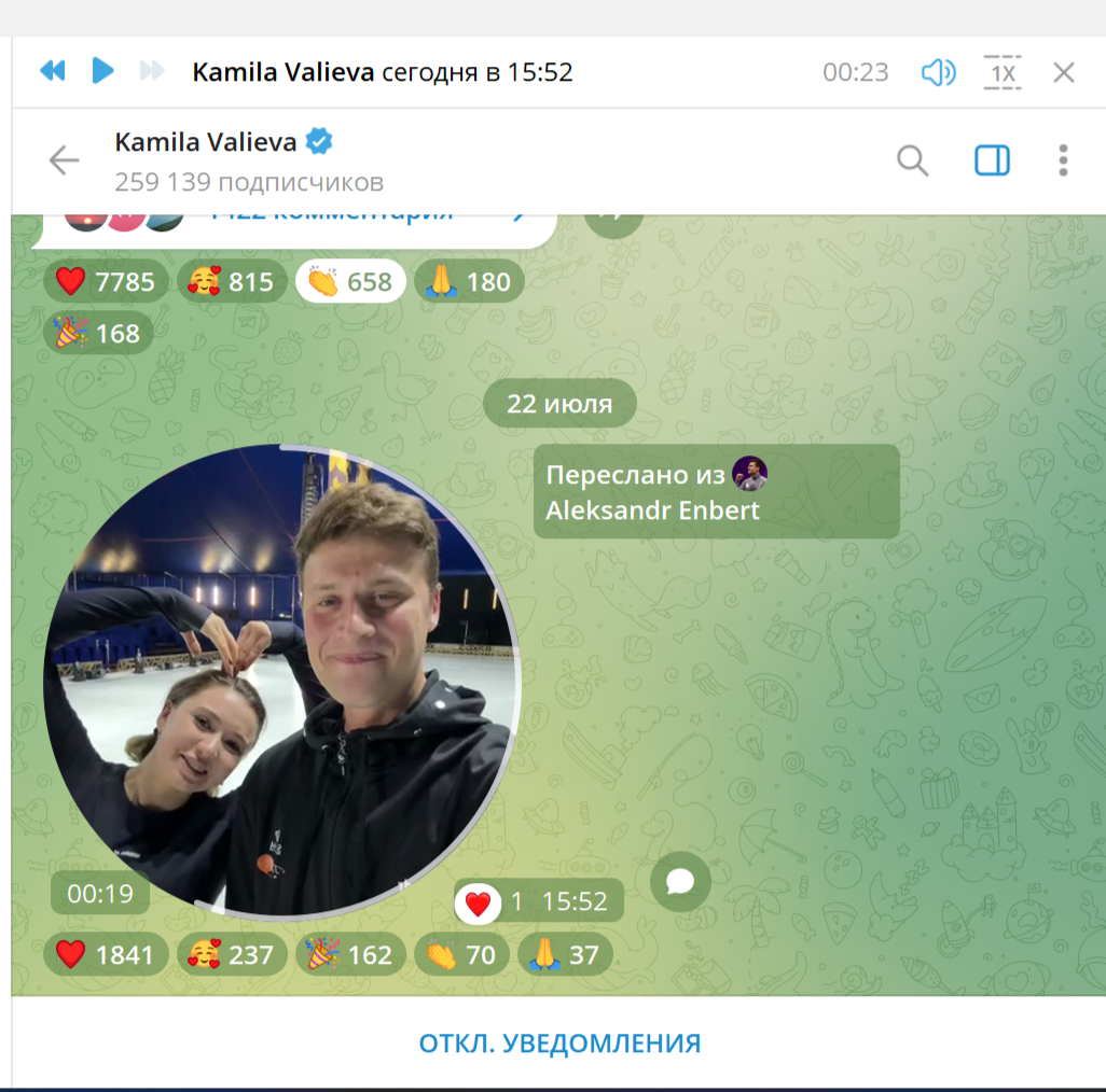 Сегодня в Сочи, Камила Валиева впервые за полгода появится на льду и выступит в шоу "Руслан и Людмила" в роли Людмилы. Её партнёр - Александр Энберт Слова Камилы Валиевой обращённые к зрителям после окончания шоу: Я безумно рада вернуться на лед. Спасибо вам за такую поддержку, что вы здесь, поддерживаете, любите, даете нам энергию. Конечно же, хочу сказать огромное спасибо коллективу, потому что это самые добрые, лучшие люди, с которыми я могла вернуться на лед. Я всех очень люблю. Очень скучала и надеюсь, дальше будет только лучше Ками, мы тебя ждали ❤️