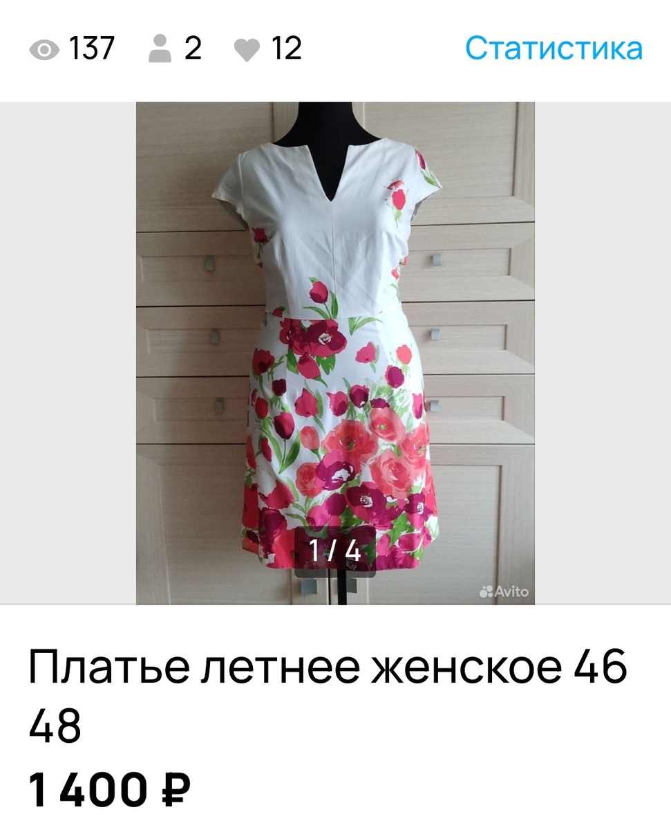 Я тут выпала с канала. Было очень много семейных хлопот. На Авито тоже активностей с моей стороны не было. Но там в это время все-таки небольшое движение шло. Случилась продажа, которая меня очень порадовала. Я продала платье дочки и не за бесценок. Платье это очень хорошее по качеству: сатин-стрейч. Хлопок с гладкой поверхностью. Дочка его носила не очень много. Оно было в отличном состоянии: даже в районе подмышек, не смотря на то, что ткань белая, все прекрасно. И в целом платье классное. Фасон не из тех, которые носишь сезон-два, а потом они морально устаревают. Мне даже жалко было эту вещь продавать. Но дочери платьице просто надоело, поэтому оно отправилось на Авито. Покупателям тоже платье, видимо, понравилось, потому что после размещения объявления его стали добавлять в избранное. И ушло оно на первом круге. У меня с одеждой так бывает редко. Покупательница попросила скидку. Я уступила 100 рублей, ее это устроило. Меня еще поразила смелость покупательницы, ведь доставку она офо