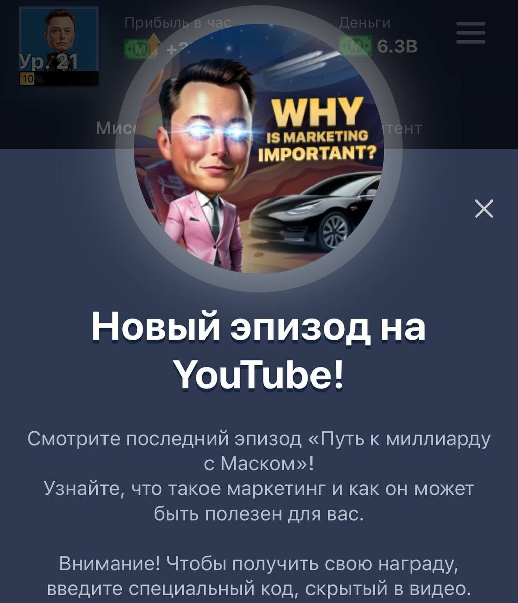 В MUSK EMPIRE новое задание - просмотреть видео на их канале YouTube. Задание находится в Квесты - Миссии