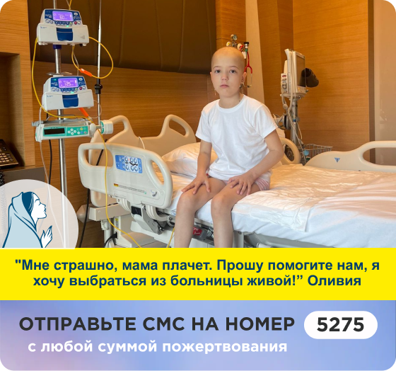 Мы начали борьбу. Наша Оливия проходит мучительные процедуры. У нас уже нет средств ни на праздник каждый день, чтобы надышаться жизнью, ни на борьбу. Но мы взываем к помощи добрых людей! Мы просим заступиться за Оливию перед страшным лицом РАКа! Мне кажется я схожу с ума! Каждый день видеть страдания ребёнка, есть в коридоре, потому что от запахов Оливию тошнит. Не знаю, что страшнее всего, результаты анализов или счёт. Если не будет оплачен счёт, то уже и анализы не будут важны. Как смотреть на календарь и не погибать от отчаяния и уныния?! Как понимать, что линия календаря приближает нас к концу её жизни, хотя спасение было так близко?! У нас в запасе осталось чуть больше недели. Молю, спасите Оливию!". Мама.
