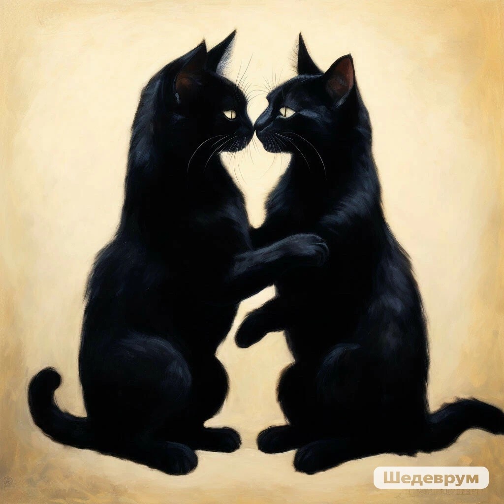 Вернувшись домой, хозяйка увидела, как кошки вылизывают друг друга.