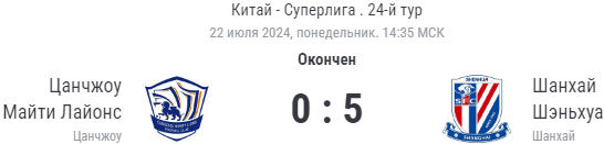 Шанхай» забил два гола в первые 28 минут матча и добавил еще два за второй тайма, добить до счета 5:0 получилось только в дополнительное время.
