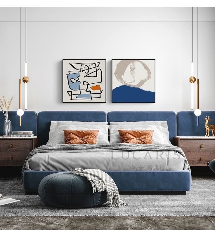 Добавить мебельный щит за кроватью, приставить тумбы и над кроватью расположить одну или несколько картин. Выглядит намного интересней пустой стены. Расположить за кровать и тумбы мягкие панели. Над кроватью добавить пано. Можно еще вместо пано расположить мебельный щит с темной кромкой, который создает черные полосы, а сверху добавить подсветку в теневом профиле. Сделать стандартное изголовье и симметричную композицию в виде рополтмерных панелей с подсветкой и картиной. Получается с такой минималистичный и сдержанный результат. Если минимализм вам не по душе, то делаем комбинацию разных стеновых панелей с подсветками. Стена становится выразительной и притягивающей внимания. Завязать стену с потолком. Например, сделать деревянную панель, переходящую на потолок вместе со создаваемыми линиями.
