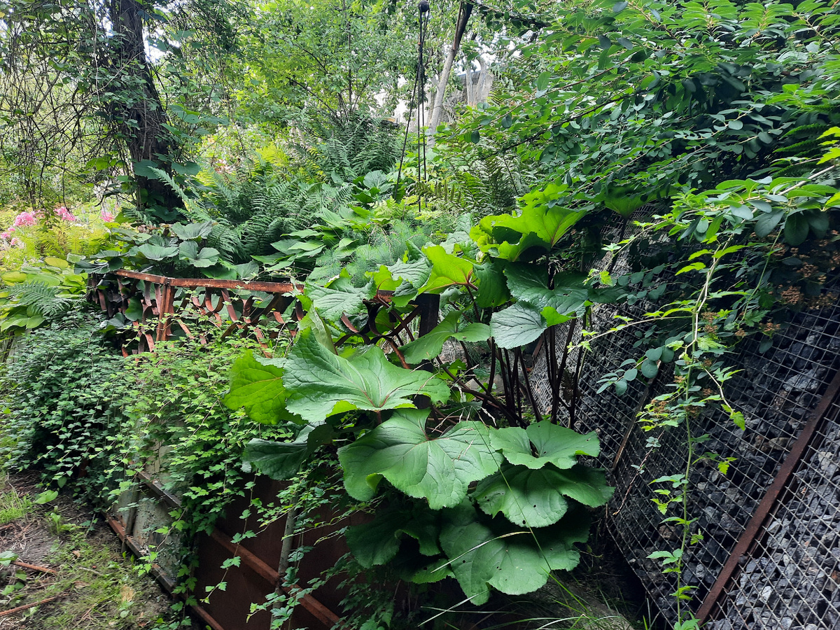 Баданы с другой стороны ступенек. Посмотрите, какие огромные листья.