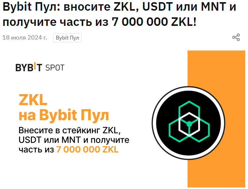 ☝️ Вчера стартовал новый лаунчпул zkLink (ZKL) на ByBit