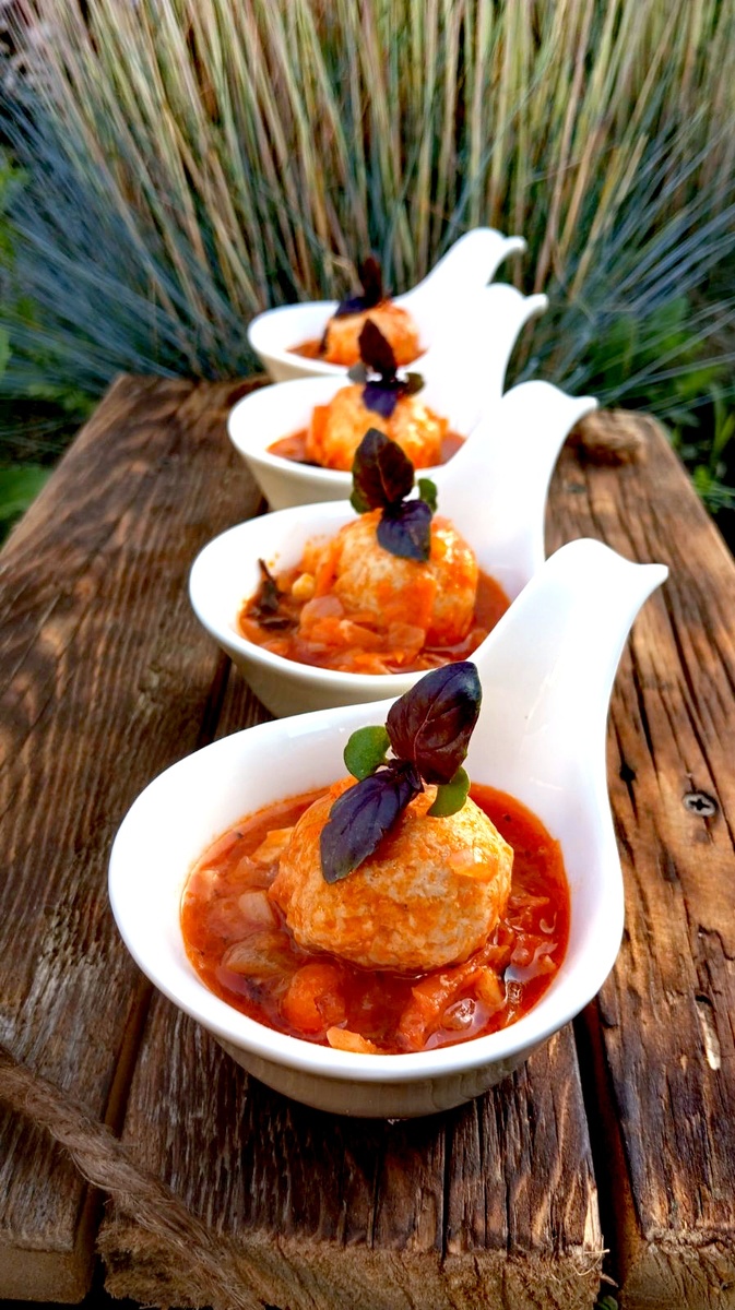 Нежные, сочные куриные фрикадельки с нотками итальянских специй. Для приготовления нам понадобится : Для приготовления соуса нам понадобится : Способ применения : 1.В фарш добавить лук ,соль перец ,хорошенько вымесить.Накатать фрикадельки по 20 -25 гр . и отставить в сторонку . 2.Режим лук на пасировку и трем морковь на тёрку. 3.Затем на растительном масле обжариваем овощи ,добавляем томатную пасту и постепенно воду ,помешивая ,чтоб томатная паста разошлась. Добавить соль , сахар, и молотый перец. Как только наш соус закипит ,мы аккуратно кладём наши фрикадельки , сверху положить веточку ригана или базилик .На медленном огне под крышкой пусть тушатся 20-25 мин. Вот наши фрикадельки готовы ,можно подавать как порционное так и на общем блюдо.