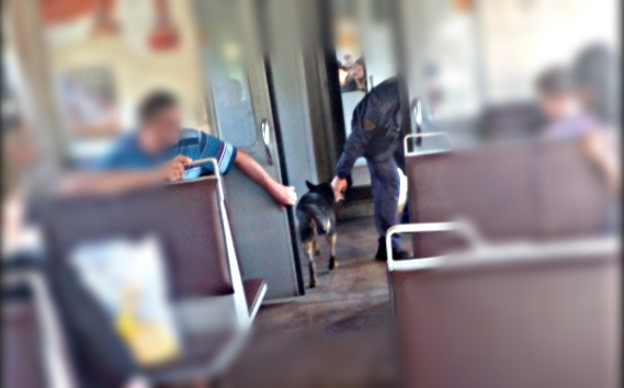 И вот снова видим объявления - эта же собачка заскочила в электричку и отправилась уже в другую сторону. Правда путешествие на этот раз закончилось быстро - безбилетницу высадили уже на следующей станции.