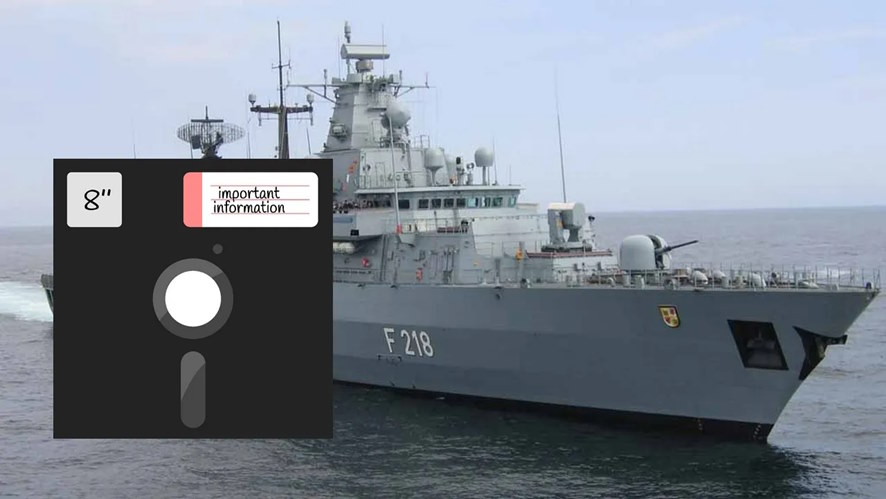Немецкие фрегаты с момента ввода в эксплуатацию работают на 8-дюймовых дискетах. От этих очень экзотичных носителей зависит многое. Корабли не смогут выполнять свои прямые функции, если у команды не окажется подобной дискеты. Как так-то?