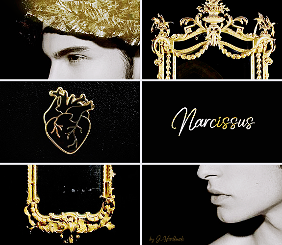 — В некотором царстве, в некотором государстве живёт король, красивее всех на свете. Нарцисс — вот как его называют, — зачитала фрейлина своей госпоже. Госпожа была принцессой, которая находилась в поиске любимого. Всех тех, кого предлагали ей родители, она отвергала. Сама девушка была хороша собой — тёмные, блестящие волосы до пола, кожа фарфоровая, губы бантиком, стройная фигура. Все были без ума от её красоты, правда, характер у неё был тяжёлый.
