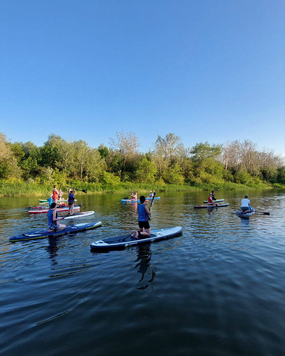 Сапы ворвались в жизнь активных людей стремительно. Все больше людей открывают для себя это увлечение. Мы с коллегами тоже решили поплавать на сапах. Выбрали свободный вечер и отправились покорять Урал на закате. На доске можно кататься стоя, на коленках, сидя и даже лёжа! Справится практически любой. Если нет проблем с велосипедом, значит и сап покорится легко. Это безопасно: на прогулке выдают жилет, весло, которое нужно отрегулировать под себя, к щиколотке крепят лиш - это страховочный трос, пристёгивающий доску к человеку (если упадёшь в воду, доска далеко от тебя не уплывет), и непромокаемый мешок для вещей. Встать на доску получилось почти сразу. Она достаточно устойчивая, широкая и плоская. Продвинутые спортсмены могут делать разные трюки на доске: встают в стойку на голове, делают сальто. Сейчас все больше приобретает популярность йога на сапах. А мы просто гребем и плывем, наслаждаясь тёплой погодой и закатным солнцем. Вокруг нас проносятся лодки, катера, создавая вокруг ощ