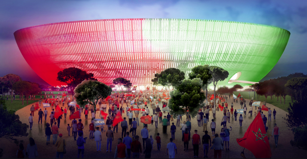 Уникальный момент в богатой истории Марокко Чемпионат мира представляет собой уникальный момент в богатой истории Марокко. Момент, который должен оставаться не просто уникальным спортивным событием, но и поводом для создания новой инфраструктуры, которая вызовет волнение и процветание у многих грядущих поколений. Таким образом, новый стадион не может быть просто еще одним футбольным стадионом, подобным множеству стадионов, построенных к предыдущим чемпионатам мира и олимпийским играм. Лишь горстка из них запечатлелась в нашей памяти. Архитектурная концепция, которую мы предлагаем, основана на том, что люди будут помнить ее на протяжении многих лет, как историческую архитектуру, которой мы все восхищаемся с древних времен. Архитектура нового стадиона очень культовая, но в то же время простая и чистая. Он не стремится к роскошной экстравагантности, а скорее к классическому и величественному виду. В то же время новый стадион является ярким выражением современности Morroco и вестником