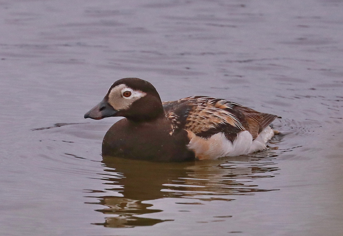 Северная утка. Встречается по всему северному побережью нашей страны. Самец в брачном пере красивого белого цвета, а в июле он в летнем пере. Самка всегда тёмно-коричневого цвета с обводкой вокруг глаз.
