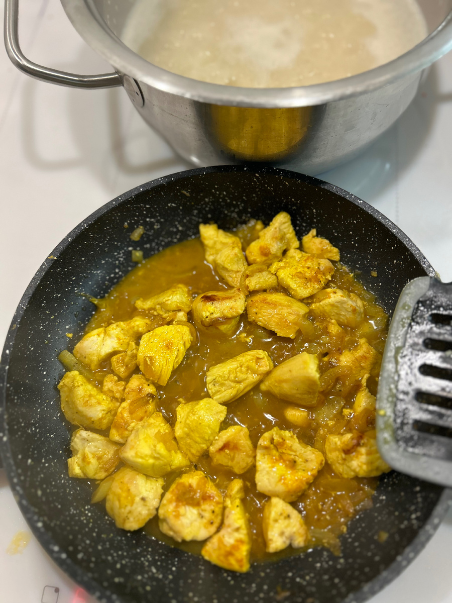 Томленое куриное филе с гарниром из длиннозерного риса: путь к здоровому ужину После напряженного дня, проведенного в бесконечных делах, нет ничего лучше, чем ужин, который не только вкусен, но и полезен. Томленое куриное филе с ароматным длиннозерным рисом — это блюдо, которое удовлетворит ваш гурманский вкус и поддержит стремление к здоровому образу жизни. Ингредиенты: Приготовление: БЖУ блюда: Это блюдо не только удовлетворит ваш вкус, но и обеспечит вас необходимыми питательными веществами. Куркума добавит особенный аромат и яркий цвет, а длиннозерный рис идеально сочетается с нежностью курицы. Всем 😋