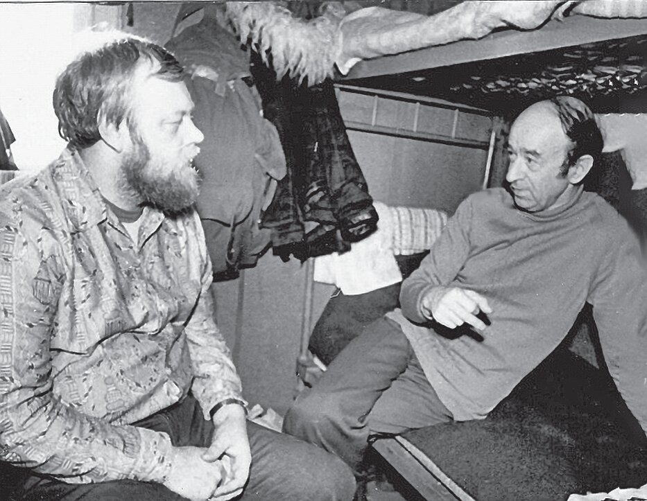 В.М. Санин (справа) и В.В. Лукин в гостинице аэропорта «Остров Средний». Апрель 1985 г. Фото В.А. Сайбеля