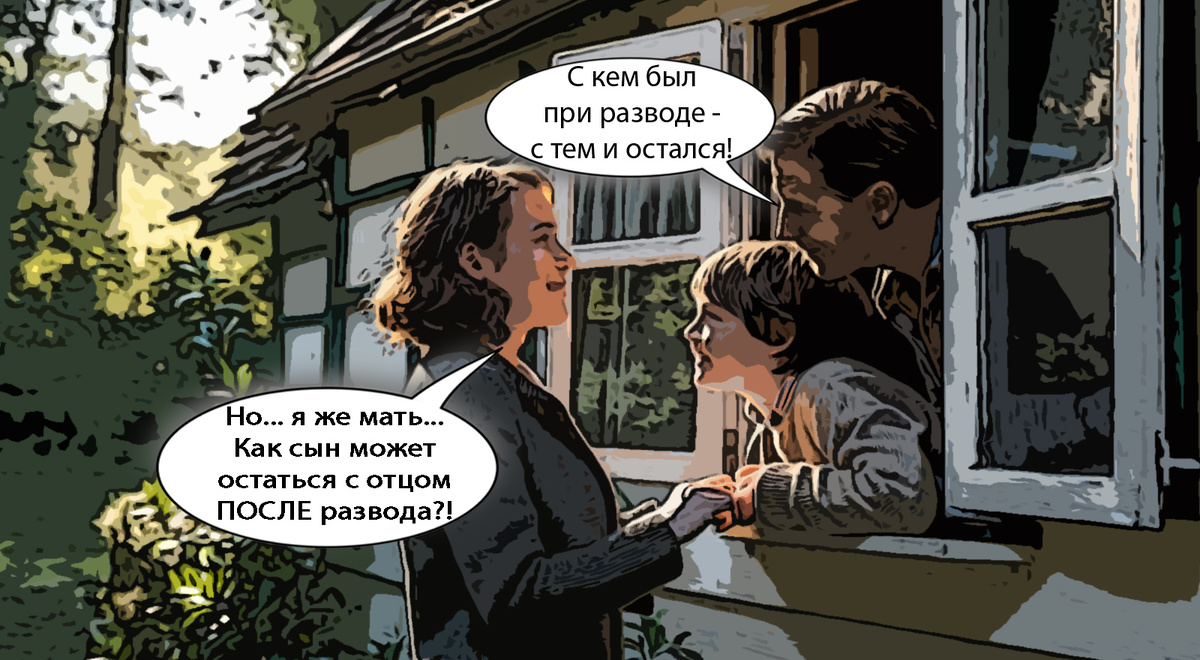 - Ничего не мешает взять и просто оставить ребенка себе в момент развода. Все, она/она/они живут с папкой. Точка! А-а-а, плачут и хотят к маме, потому что мама 24/7, а папа 20 минут после работы? Грустно. Но таковы реалии жизни.