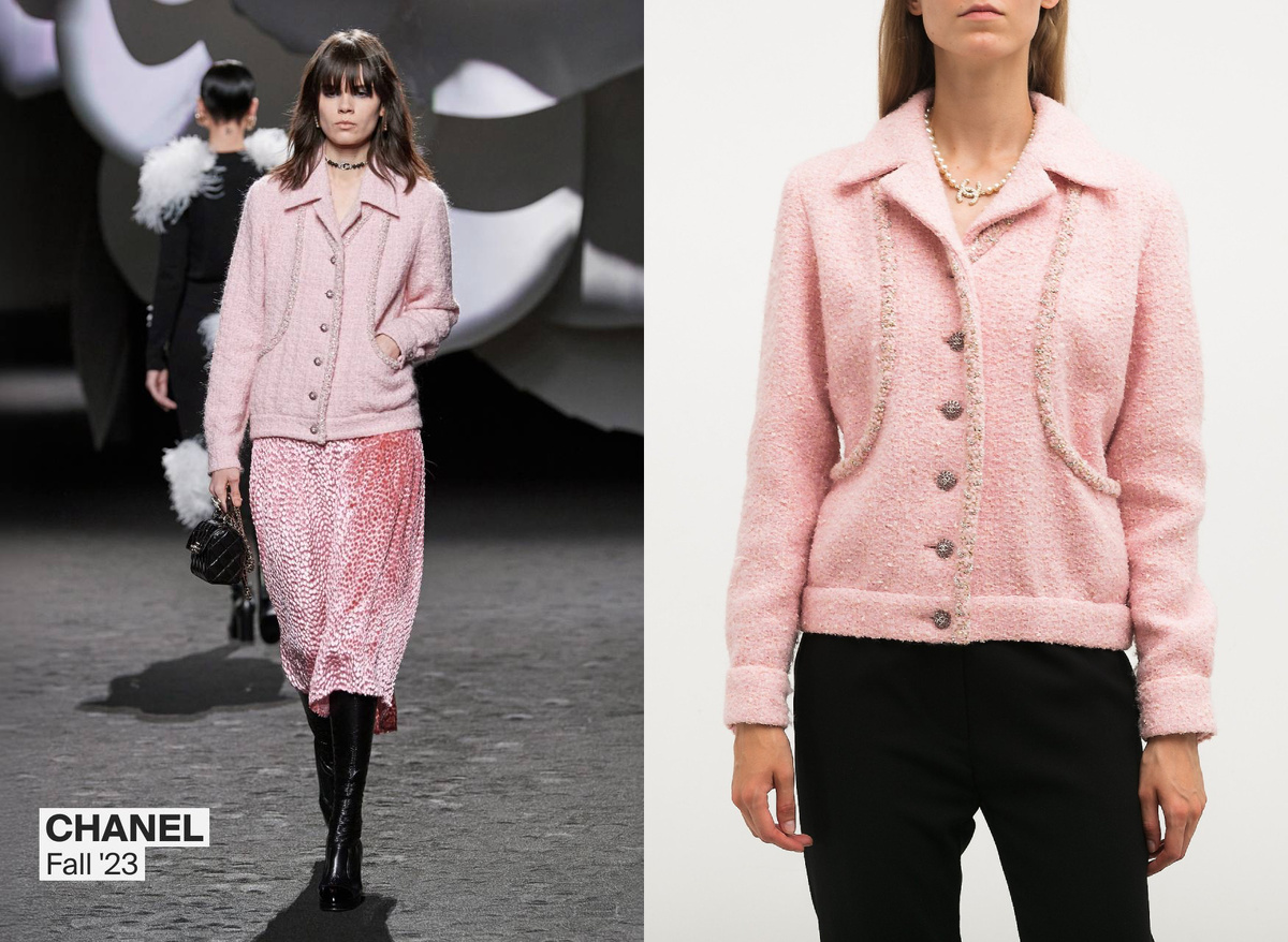 Жакет от бренда Chanel — это культовая вещь, которую создала Габриэль Шанель еще в 1920 году. Коко известна новаторством, и она стала первой, кто ввел в женский гардероб твид, ранее считавшийся мужским материалом. Прошел век, а её жакеты по-прежнему гармонируют с любыми предметами одежды: от строгих брюк до повседневных джинсов. В каталоге SFS представлено несколько эксклюзивных жакетов с подиума! Нежно-розовый жакет из недавней коллекции Fall 23 и два варианта с показов 2011 года (причём, зелёный жакет можно носить по-разному, так как он состоит из двух частей). Цена SFS: 250 000 ₽ Посмотреть на сайте Цена SFS: 185 000 ₽ Посмотреть на сайте Цена SFS: 159 000 Посмотреть на сайте