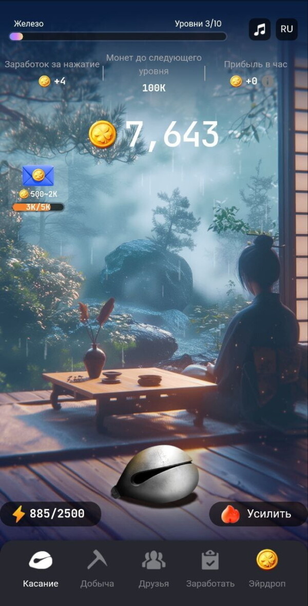 🟠При достижении кол-во монет, открываем конверт для бонуса (слева на экране)