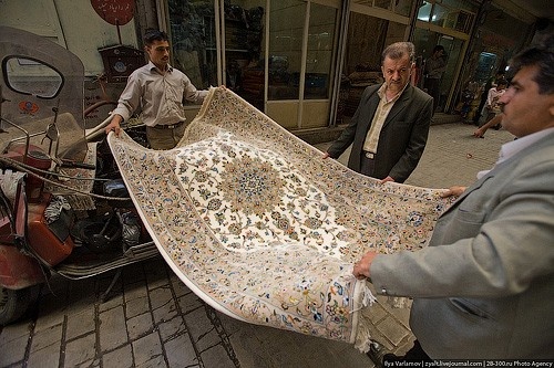 3. Ковровый барон давно не имеет к производству ковров никакого отношения. Он размещает заказы у бедных иранских крестьян, которые высоко в горах годами ткут ковры, им он платит от 500 до 1000 долларов за коверогод (то есть если ковер делает пол года, то платит в 2 раза меньше), а потом продает их в 5 раз дороже туристам.