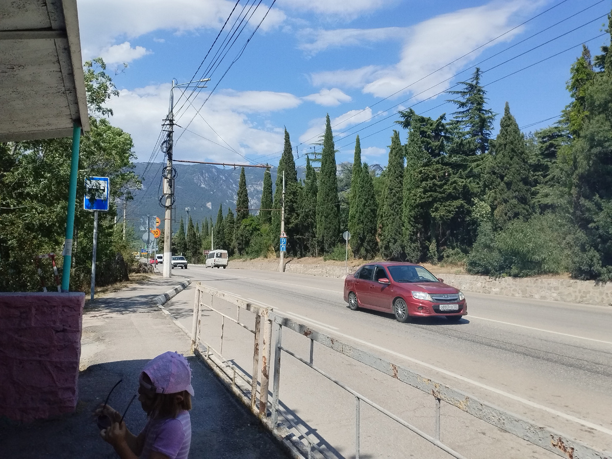 Проснулись мы рано, в 7, но пока то да се, только в 9-30 были на остановке. Маршрутка до трассы недавно ушла, и минут 20 стояли, ждали другую. Потом на трассе 52-й троллейбус до Симферополя ждали полчаса. Проезд вышел дешево, что-то вроде 178 рублей за взрослого человека дети бесплатно. Алушта. Как хорошо, что мы туда отдыхать не поехали. Очень большой город. Когда ехали на троллейбусе, видели памятник в виде старого троллейбуса, сфотографировать не успела. Были очень красивые виды - ехали то по горам. Сыграла роль также пробка под Симферомолем из-за аварии. Это все сыграло в том плане, что на электричку на Евпаторию мы опоздали на 20 минут, и новую ждали два с половиной часа. Походили с сумарями как цыгане по близлежащим кафе, но выбрали все равно привокзальную столовую. Так время и ушло. Но приехали к вечеру, потеряно 2,5 часа, которое могли провести на море. Наше жилье находится в старом городе, рядом с мечетью и муэдзина мы уже слышали один раз. Радует, что не как в Турции -