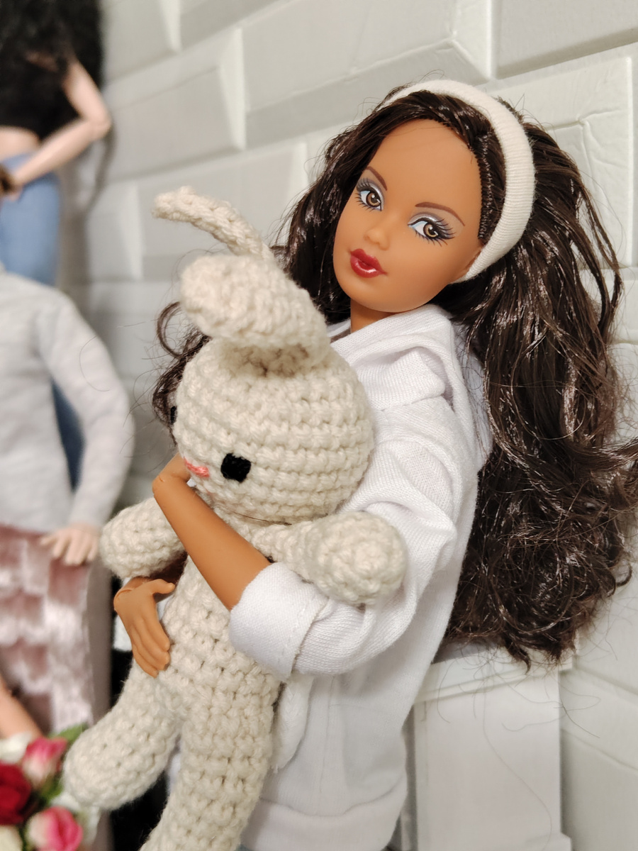 Все же написать список своих хотелок - это, действительно, как составить план к действию. И я этот план начала достаточно активно выполнять. В списке моих кукольных желаний были девочки-заиньки на молде Штеффи со взглядом вбок из серии Birthstone Beauties. Уж очень они славные. Серию начали выпускать в 2007 году. Поэтому кукла эта пока у меня "самая старенькая". Куклы отличаются скинтоном, цветом глаз , волос и нарядами, цвет которых соответствует одному из драгоценных камней. Мой выбор пал, хотя это громко сказано, на Сапфир. Но честнее будет сказать, что мне попалось объявление о продаже уже ошарниренной куколки по цене куклы НРФБ. Новая кукла мне была не принципиальна: в родных нарядах у меня никто не стоит, модельное тело красивое, но мне не подходит. Поэтому уже готовый гибрид меня вполне устроил. Из родного на куколке были лишь сережки и нераспускавшаяся еще залаченная прическа с красивыми кудрями спереди и почти валеночком сзади. От долгого хранения волосы сзади немного замочали
