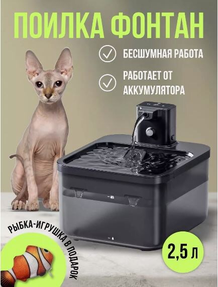 Если вы заботитесь о здоровье своих питомцев и предпочитаете делать выбор в пользу инновационных технологий, то обратите внимание на такое уникальное изобретение, как фонтан поилка для кота и других домашних животных. Основные преимущества нашей поилки для животных: – Свежая вода 24/7. Умный фильтр обеспечивает постоянное очищение воды, даря вашим пушистым друзьям свежесть на протяжении всего дня. – Бесшумная работа. Компактный и тихий насос, которым оснащена дорожная поилка для кошек, не потревожит даже самых чувствительных к шуму питомцев. – Универсальность. Не только идеально подходит для кошек, но это также поилка для собак и даже для маленьких грызунов. – Энергосбережение. В экономичном режиме заряда аккумуляторов хватает на целых 30 дней. Полная зарядка занимает всего 6 часов и позволяет использовать поилку как обычную миску во время этого процесса. Отличная поилка для собак в дорогу, когда нет возможности подключения к постоянному источнику электропитания. – Компактные размеры.