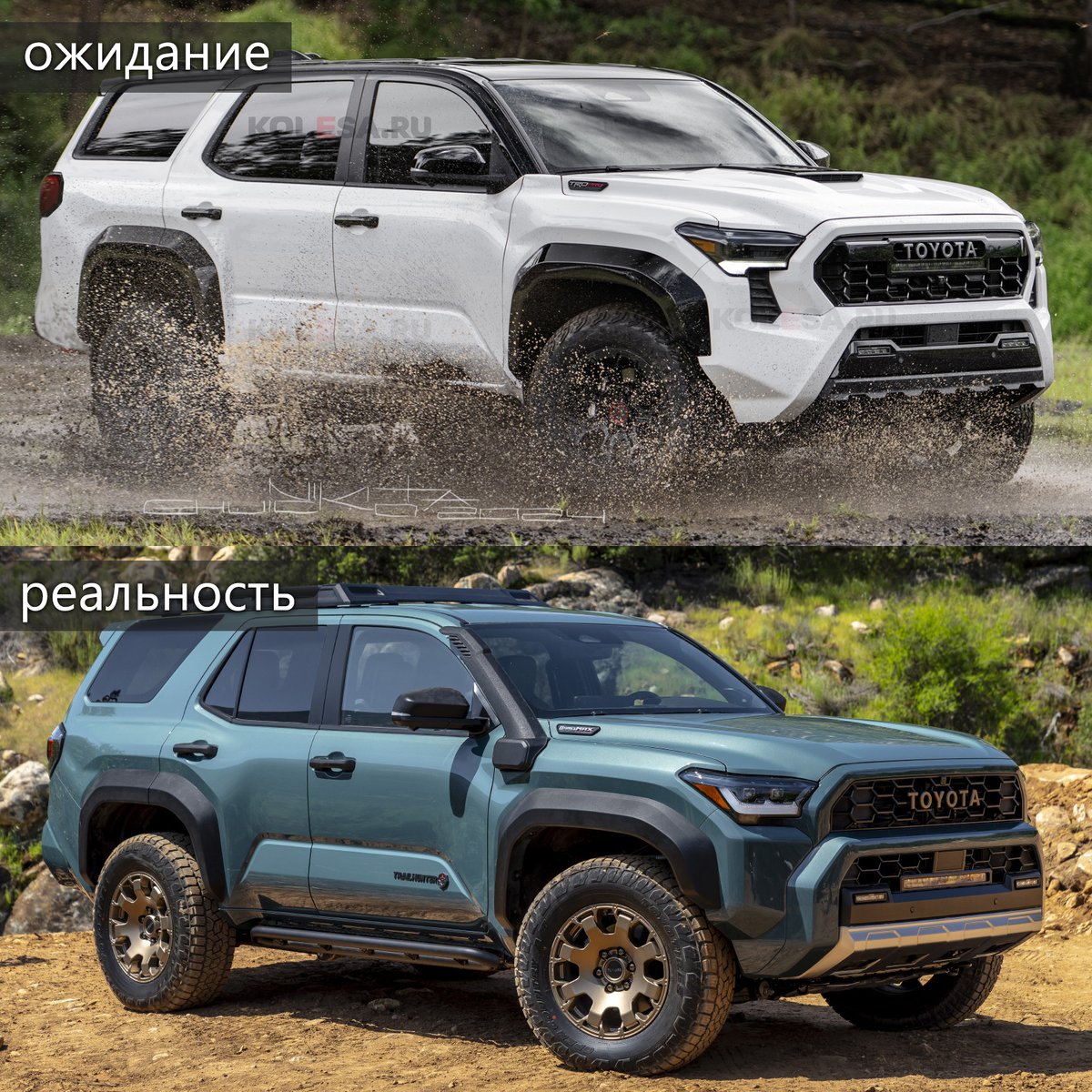 Toyota представила внедорожник 4Runner нового поколения в апреле. За несколько дней до этого мы сделали собственные изображения модели, и в отсутствие каких-либо шпионских фотографий и тизеров боковой части нам удалось угадать общую форму автомобиля и даже его характерные стойки за задними дверьми, вдохновлённые некогда популярной в России моделью второго поколения. При этом есть и отличия в пропорциях элементов задней части, а также в дизайне фар и решётки радиатора.
