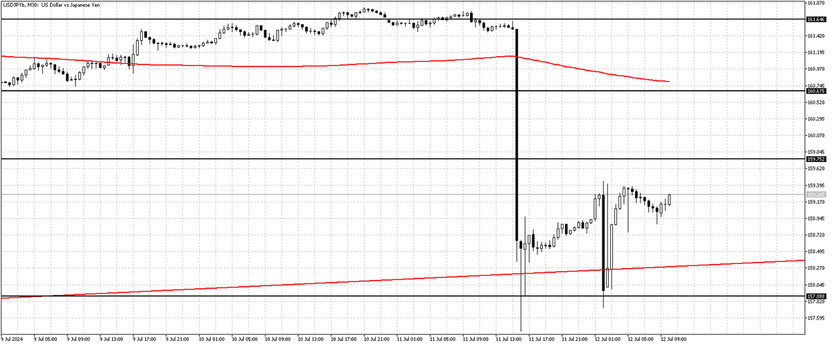 После публикации данных по индексу потребительских цен (CPI) в США, который показал замедление инфляции, пара USD/JPY снизилась более чем на 2,0%. Это указывает на то, что инфляция в США приближается к целевому уровню Федеральной резервной системы (ФРС) в 2,0%, что повышает вероятность снижения процентных ставок в ближайшее время. Снижение процентных ставок делает доллар США менее привлекательным для инвесторов, что приводит к его ослаблению по отношению к японской иене. В то же время, японская иена получает поддержку благодаря росту инфляции в Японии. Однако дальнейшее снижение курса USD/JPY может быть ограничено из-за низких перспектив повышения процентных ставок Банком Японии. Несмотря на возможность повышения ставок на 0,25% в июле, ожидается, что Банк Японии не начнёт агрессивный цикл ужесточения монетарной политики. Кроме того, существует риск «скрытой интервенции» со стороны японских властей, которые могут предпринять дальнейшие меры для поддержки иены, если её курс продолжит сн