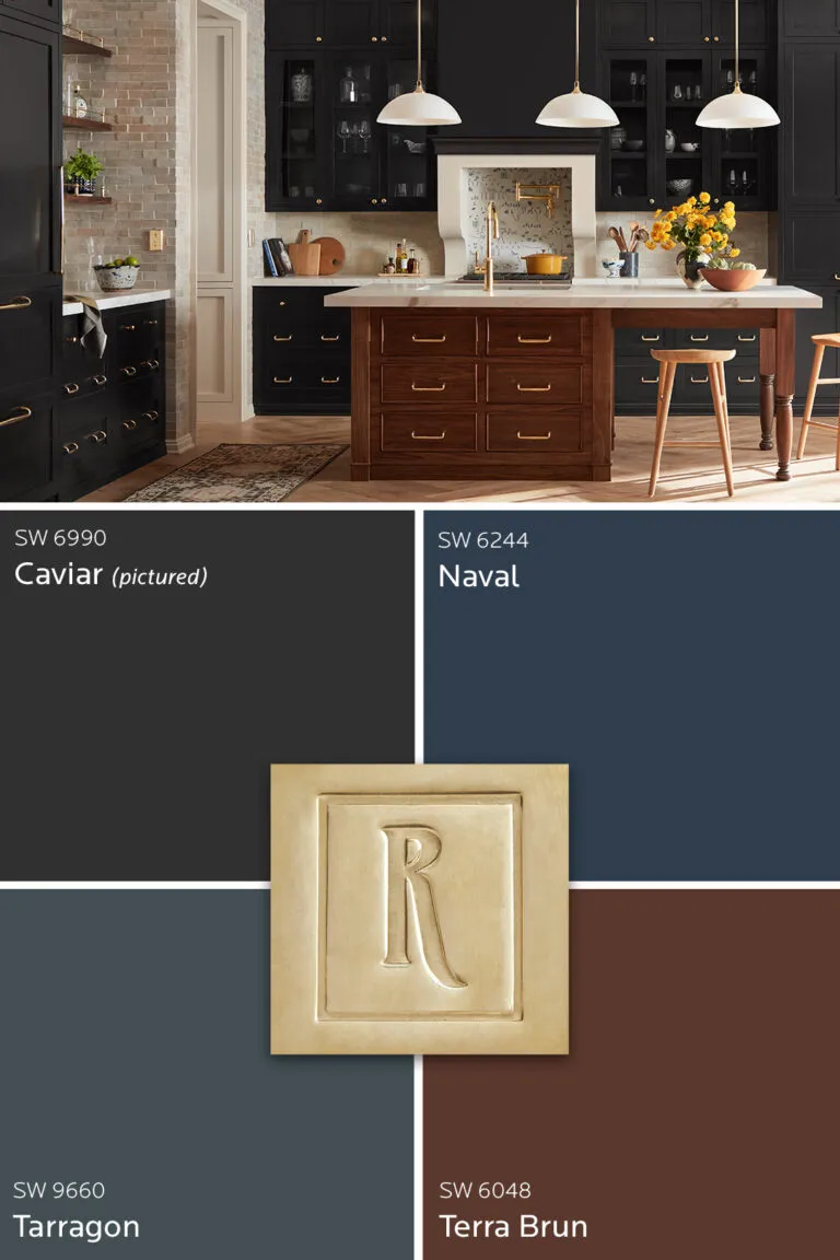 Поиск идеального цвета кухонных шкафов — это важное решение. Одна из самых важных вещей, о которой следует помнить, — это согласование вашего нового оттенка с фурнитурой и оборудованием. Представляем вашему вниманию цветовые палитры, которые были искусно отобраны для сочетания с их самыми продаваемыми отделками освещения, оборудования и сантехники, чтобы помочь вам создать идеально собранный образ в самом сердце вашего дома. Опирайтесь на винтажный стиль, сочетая насыщенные, капризные оттенки с естественно стареющей отделкой. Традиционные образы естественным образом подходят для этой цветовой и отделочной комбинации. SW 6990 Caviar: темный, насыщенный черный цвет — смелый, но неподвластный времени выбор. SW 6244 Naval: насыщенный темно-синий цвет добавляет классическую, изысканную ноту. SW 9660 Tarragon: добавьте немного драматизма и изысканности с помощью пыльного сине-зеленого оттенка. SW 6048 Terra Brun: согрейте образ с помощью землистого терракотово-красного оттенка. Яркая серебри