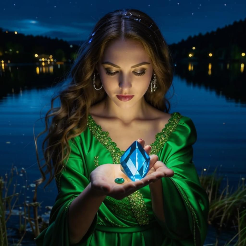 Вот он – местами нежно-зеленый, местами – насыщенного изумрудного цвета, испещренный кратерами как Луна, а формой напоминающий лист – стекло или камень, ключ между мирами, дешёвка - или ожившая легенда. Лиля не могла оторвать от него глаз. Потом она подняла взгляд. Два неба было перед ней. Одно – то, что вверху. Другое – отражалось в озере всеми своими звездами и царственной Луной, вошедшей в полную силу.